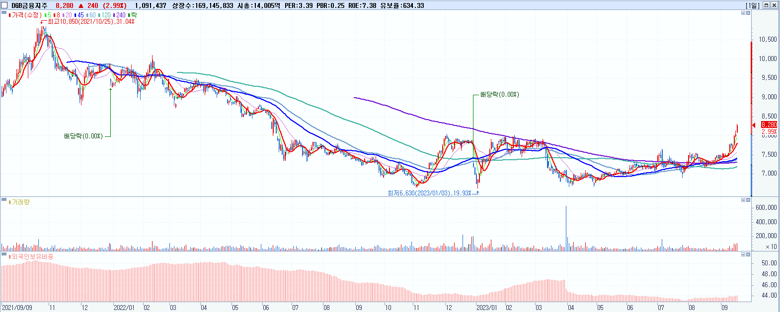 DGB금융지주 8,280원 ▲ 2.99% (KOSPI, 139130)