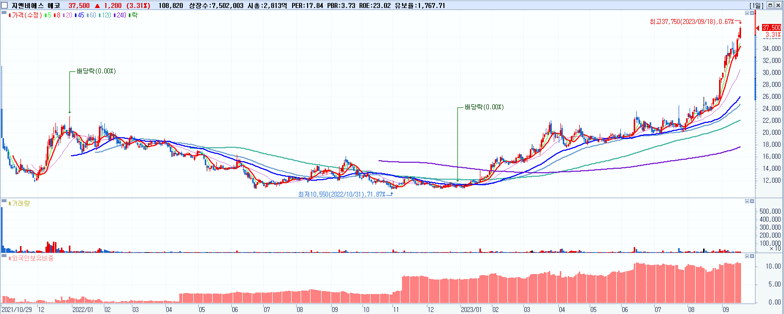 지앤비에스 에코 37,500원 ▲ 3.31% (KOSDAQ, 382800)