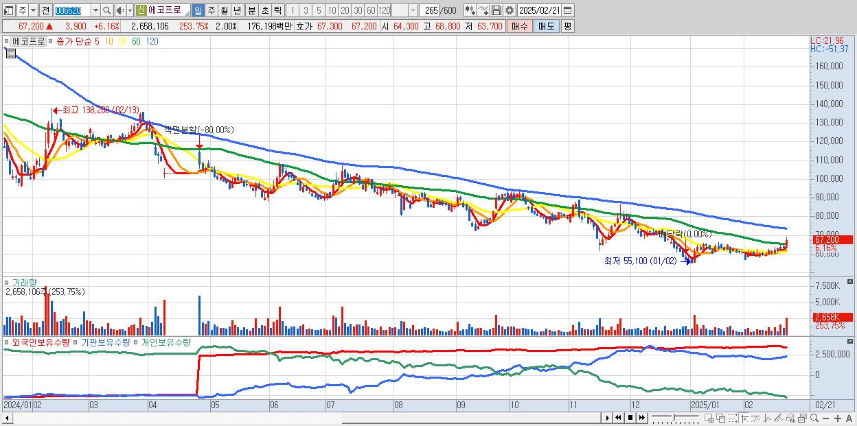 - 에코프로 (67,200원 ▲ 6.16% , 시총: 89,469억, 외국인 순매수 거래금:94억)