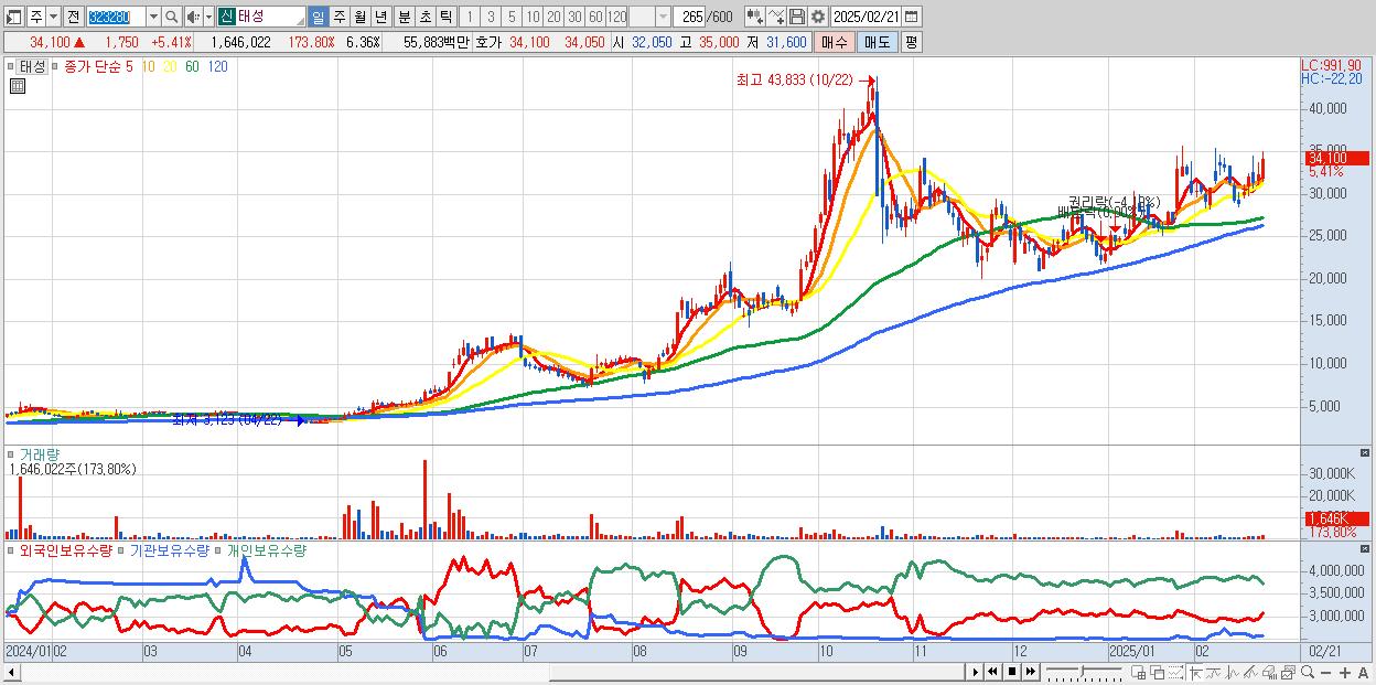 30.태성 34,100원 ▲ 5.41% (KOSDAQ, 323280)