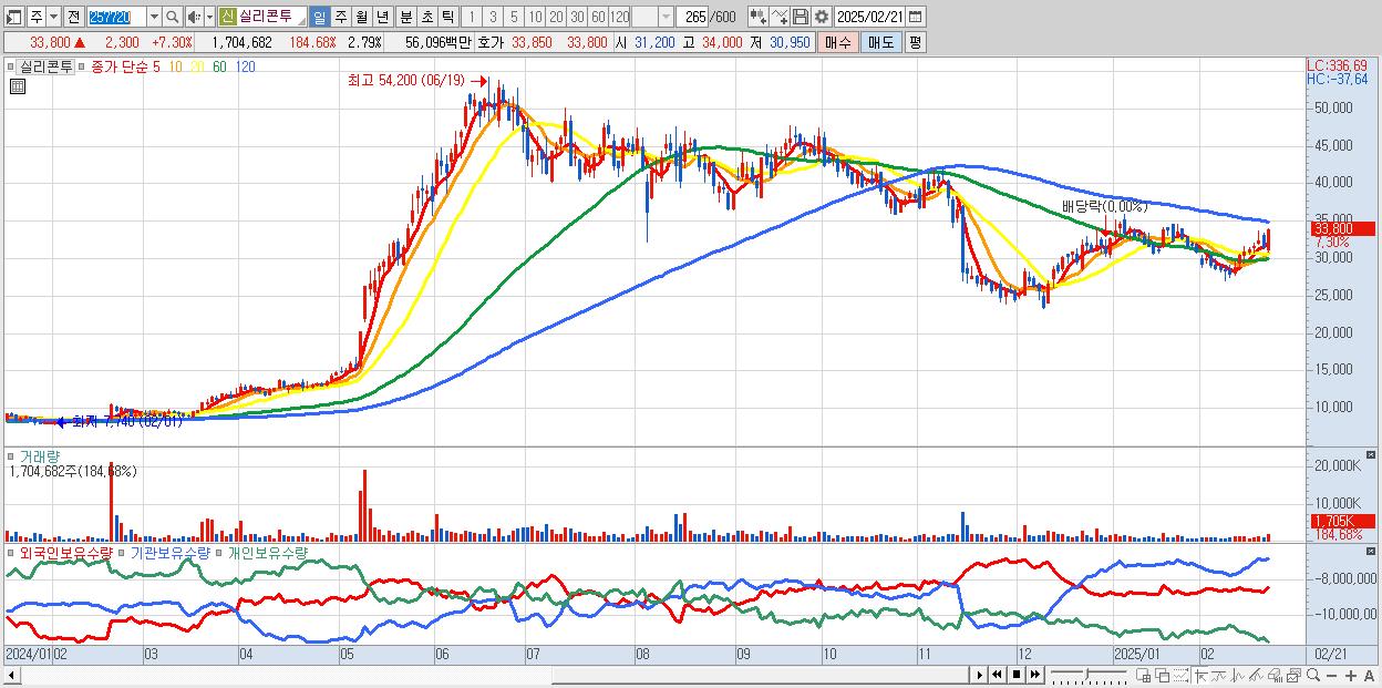- 실리콘투 (33,800원 ▲ 7.3% , 시총: 20,676억, 외국인 순매수 거래금:71억)
