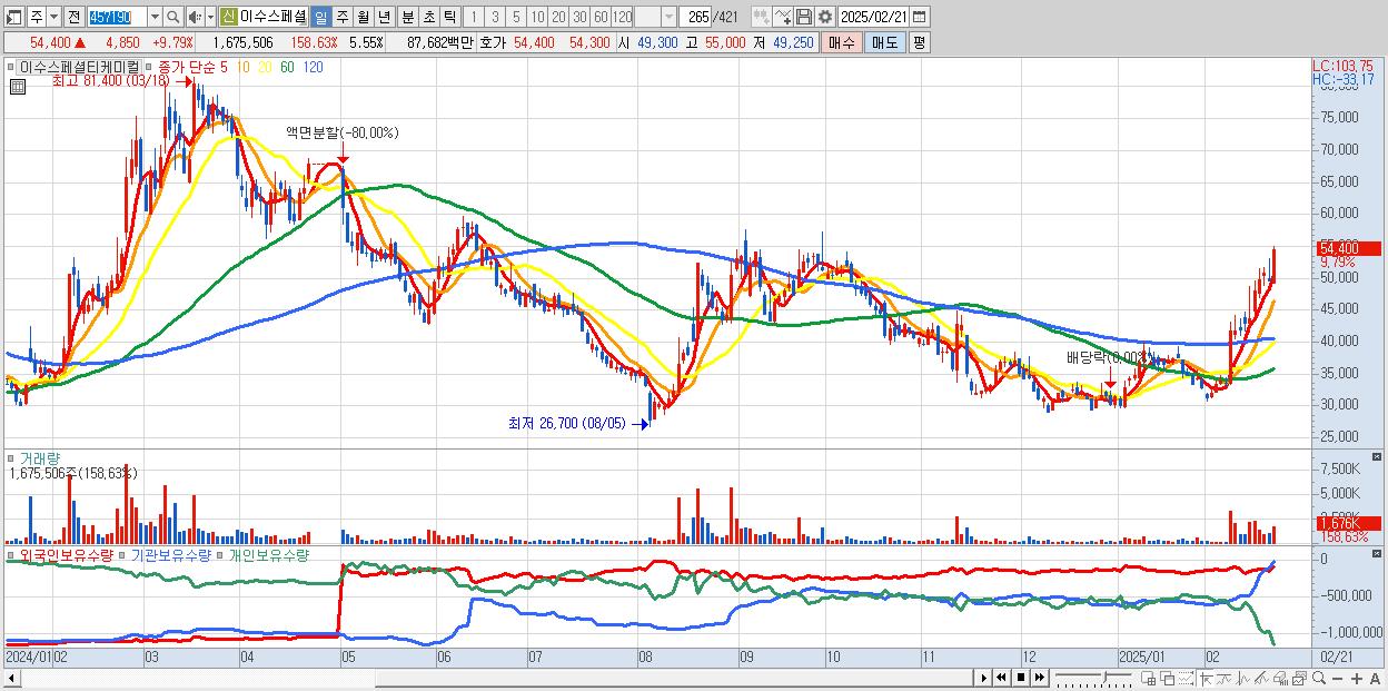 - 이수스페셜티케미컬 (54,400원 ▲ 9.79% , 시총: 16,433억, 외국인 순매수 거래금:49억)