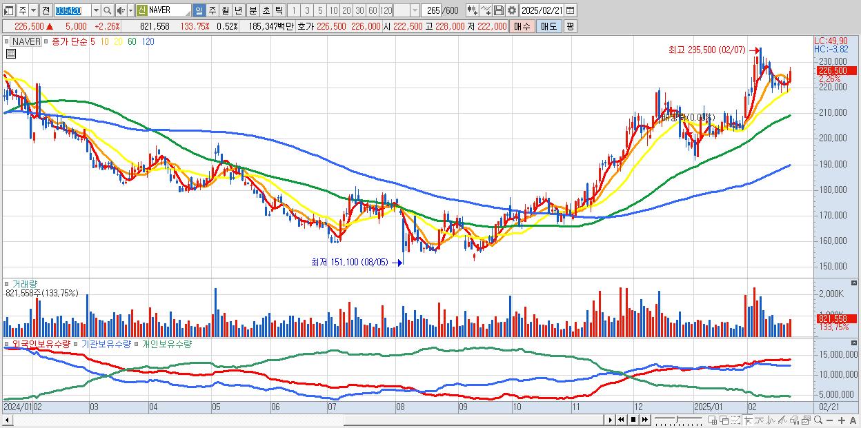 2.NAVER 226,500원 ▲ 2.26% (KOSPI, 035420)