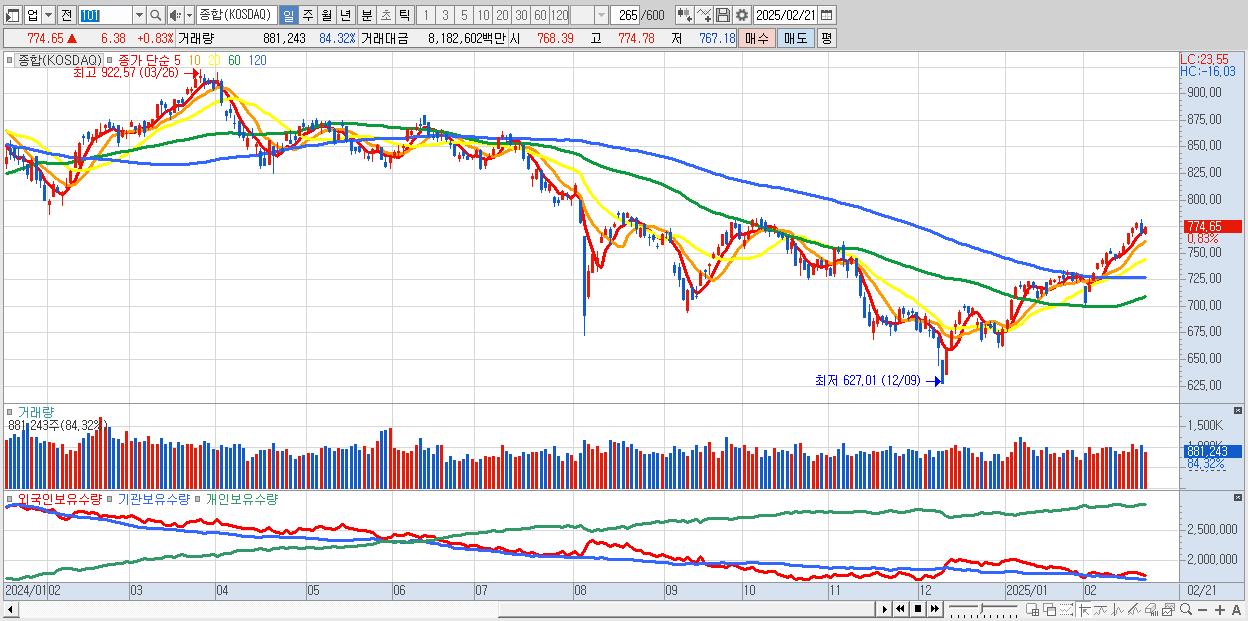 | 02/21 | 774.65 | ▲0.83% | -953억 | 1,269억 | -60억 | -255억 |