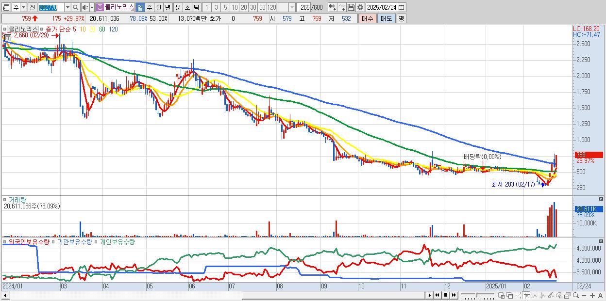 2.클리노믹스 759원 ▲ 29.97% (KOSDAQ, 352770)