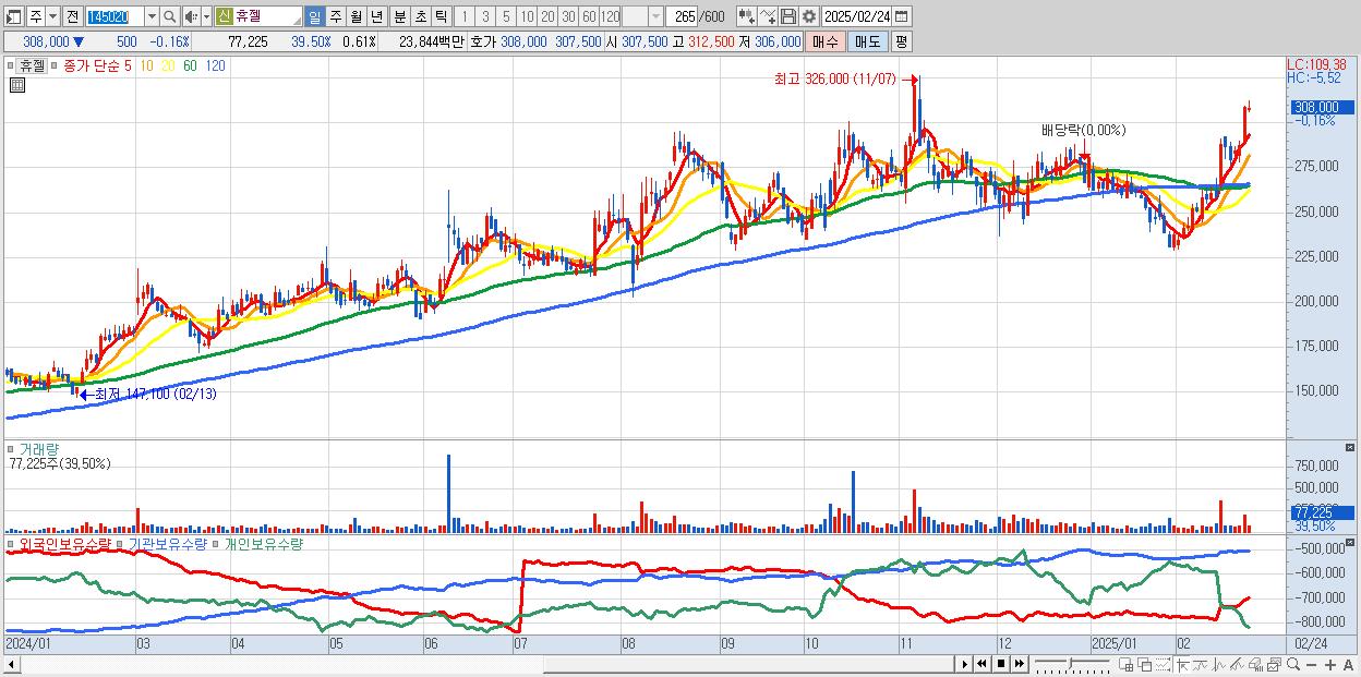 2025-02-07 목표주가: 63,000 투자의견: 매수 상승여력: 92.96% 제공처:SK증권/박찬솔