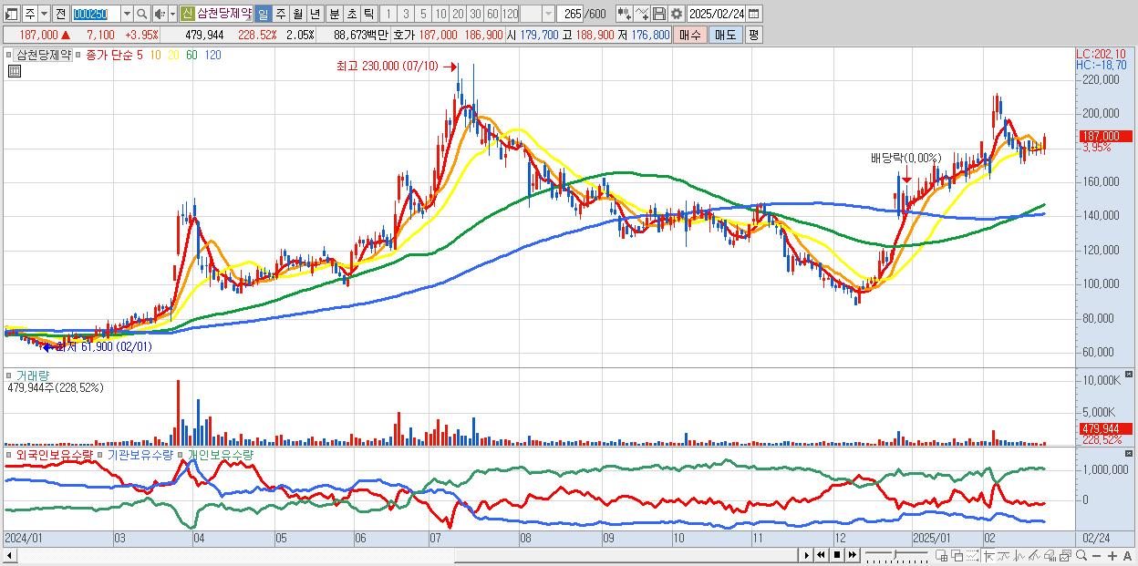30.삼천당제약 187,000원 ▲ 3.95% (KOSDAQ, 000250)