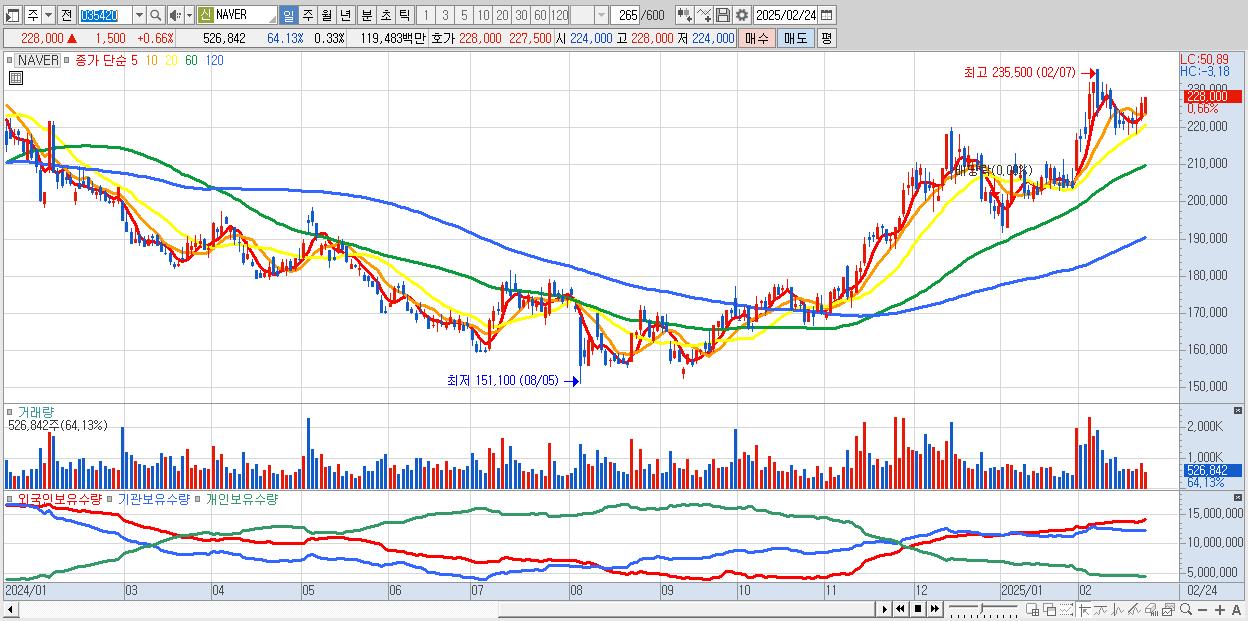 2.NAVER 228,000원 ▲ 0.66% (KOSPI, 035420)
