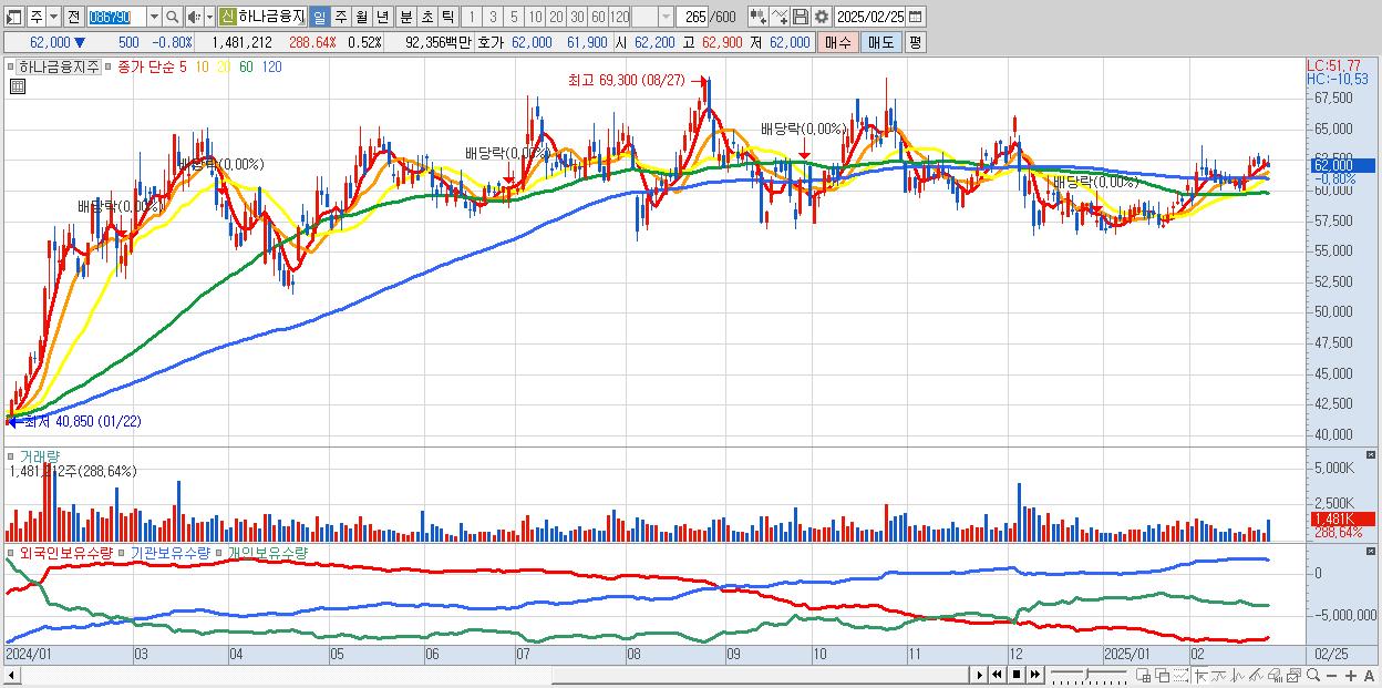 - 하나금융지주 (62,000원 ▼ -0.8% , 시총: 178,089억, 외국인 순매수 거래금:138억)