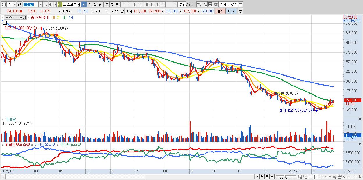 - 포스코퓨처엠 (151,000원 ▲ 4.07% , 시총: 116,969억, 외국인 순매수 거래금:68억)