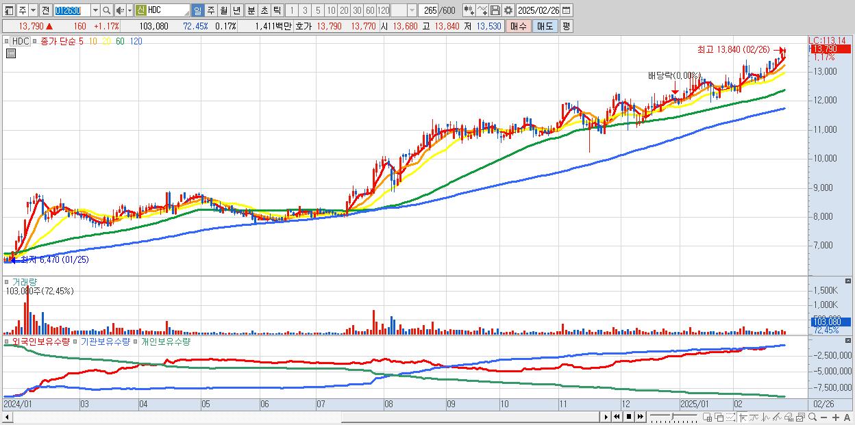 HDC 13,790원 ▲ 1.17% (KOSPI, 012630)