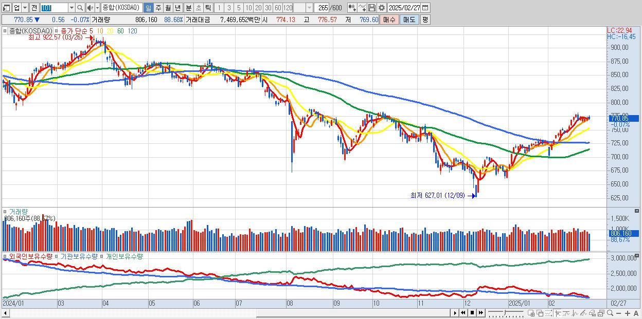 | 02/26 | 771.41 | ▲0.26% | 1,186억 | -711억 | -470억 | -5억 |