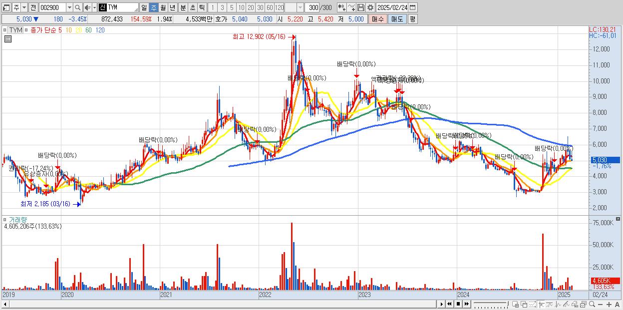 - TYM (5,030원 , 시총: 2,266억)