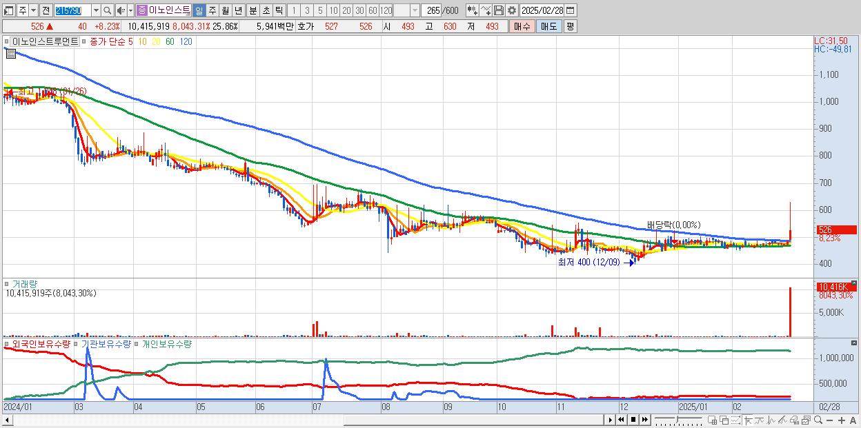 1.이노인스트루먼트 526원 (KOSDAQ, 215790)시총: 212억