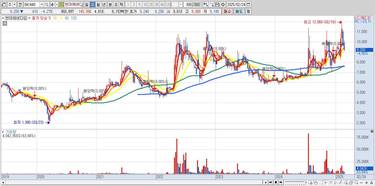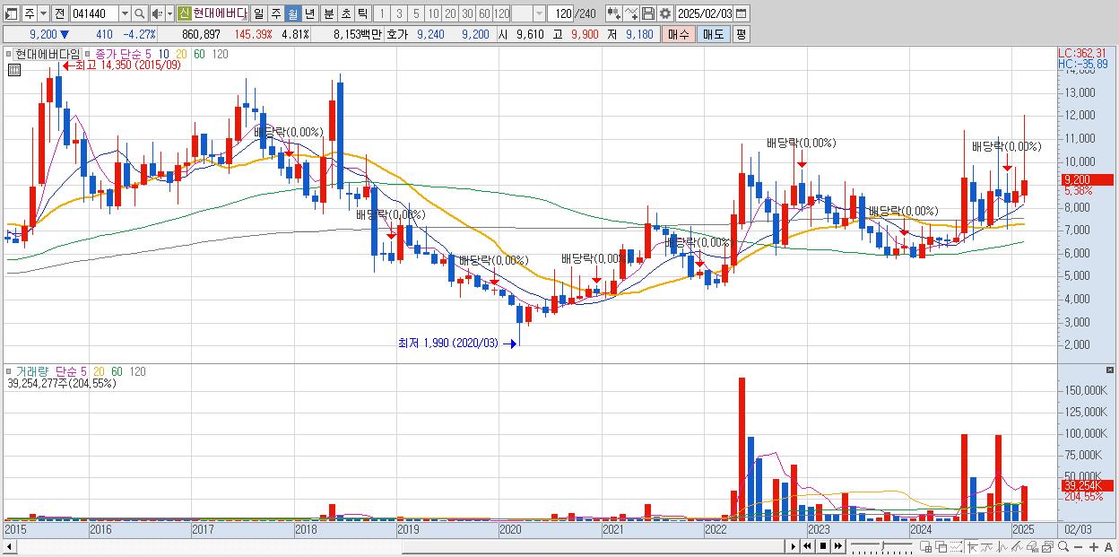 7.현대에버다임 9,200원 (KOSDAQ, 041440)시총: 1,648억