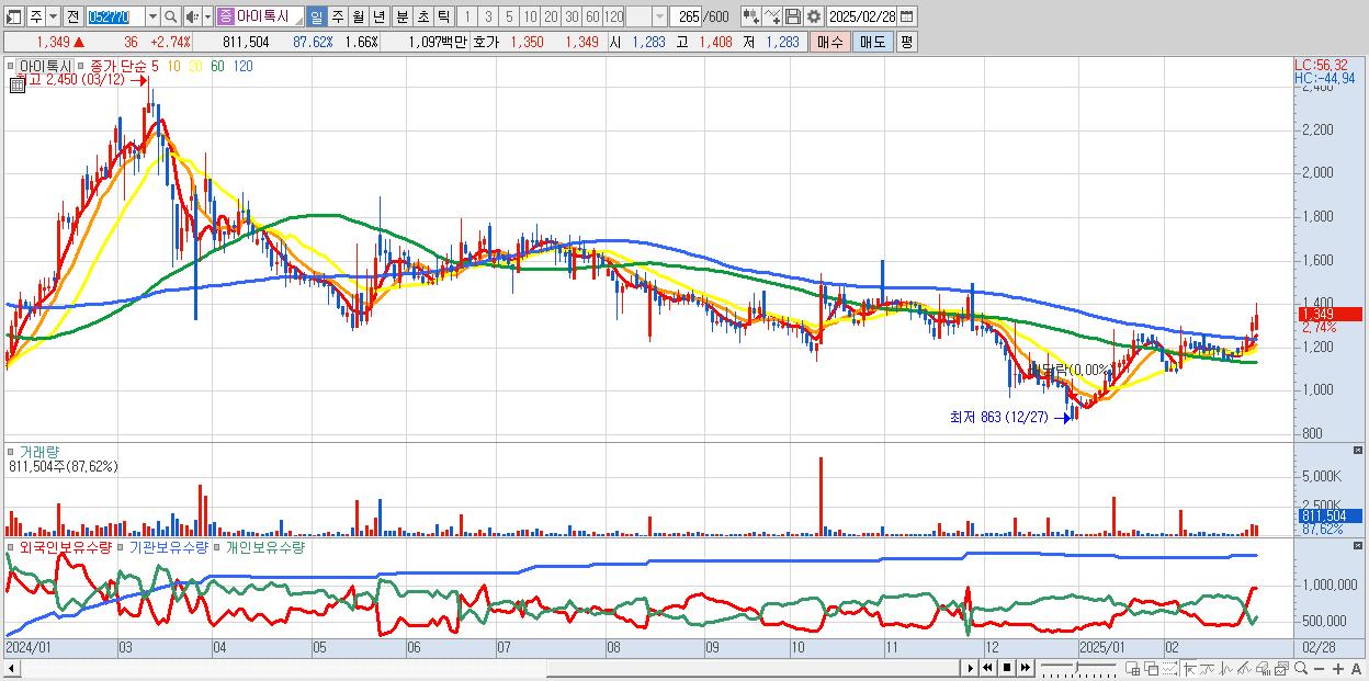 3.아이톡시 1,349원 (KOSDAQ, 052770)시총: 661억