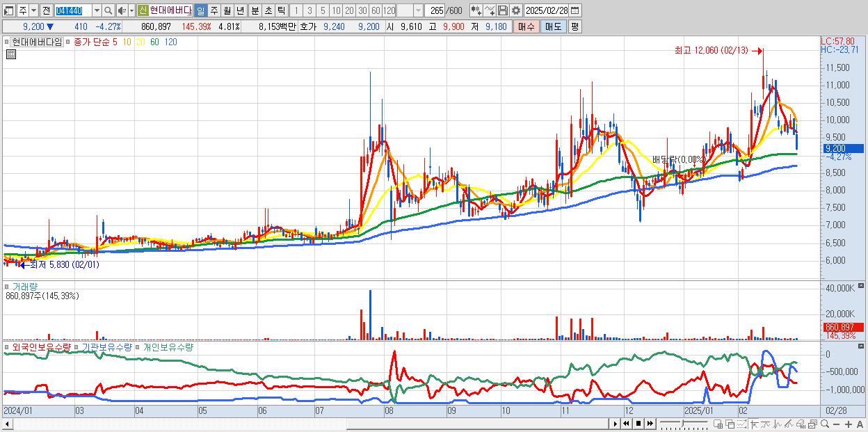 - 현대에버다임 (9,200원 , 시총: 1,648억)