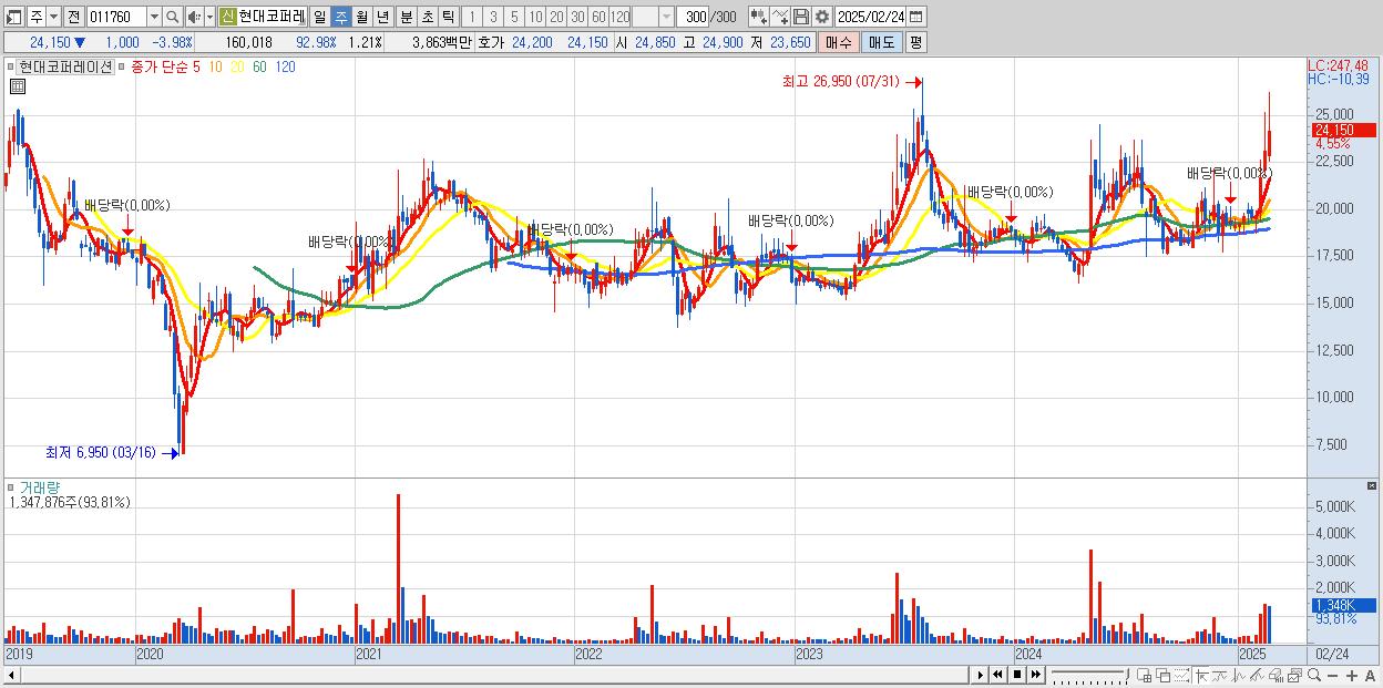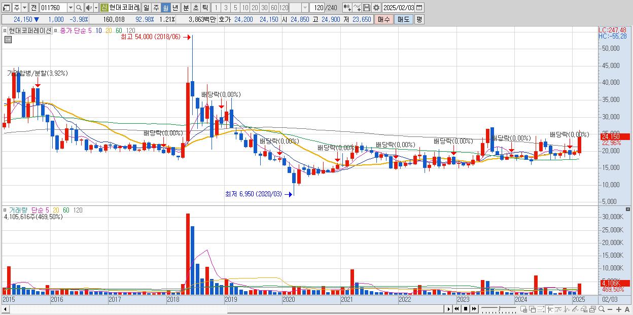 6.현대코퍼레이션 24,150원 (KOSPI, 011760)시총: 3,195억