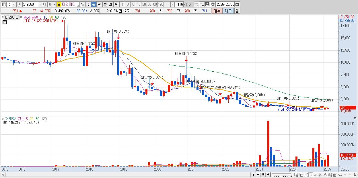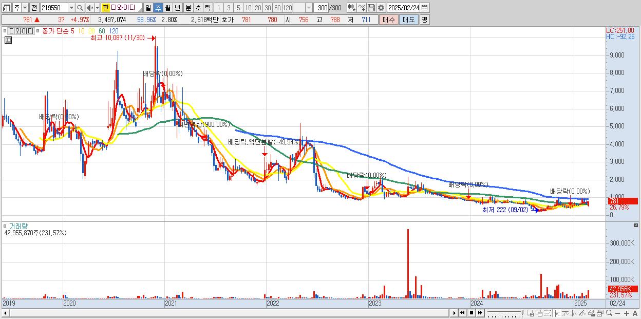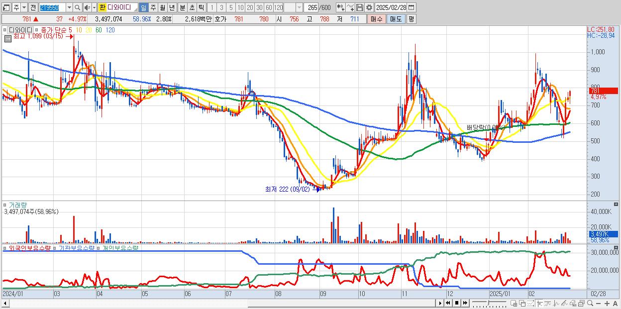 2.디와이디 781원 (KOSDAQ, 219550)시총: 975억