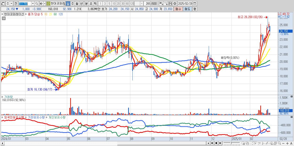 - 현대코퍼레이션 (24,150원 , 시총: 3,195억)