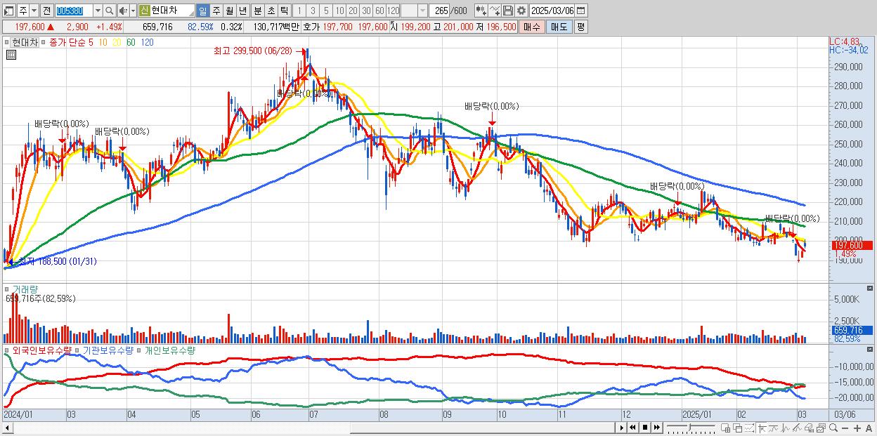 - 현대차 (197,600원 ▲ 1.49% , 시총: 413,806억, 외국인 순매수 거래금:217억)