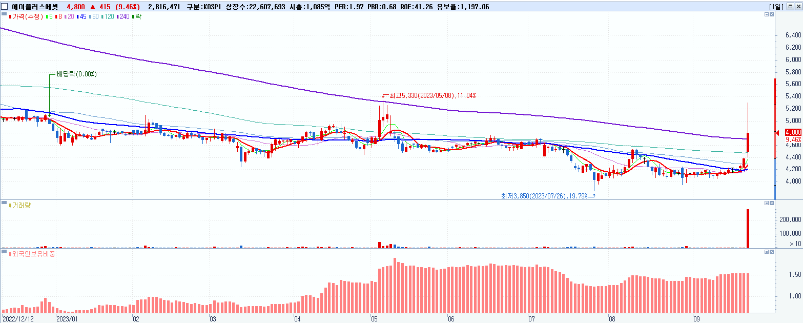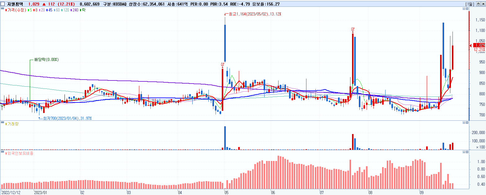 시총: 980억 거래량: 4,241,530 거래대금:259억