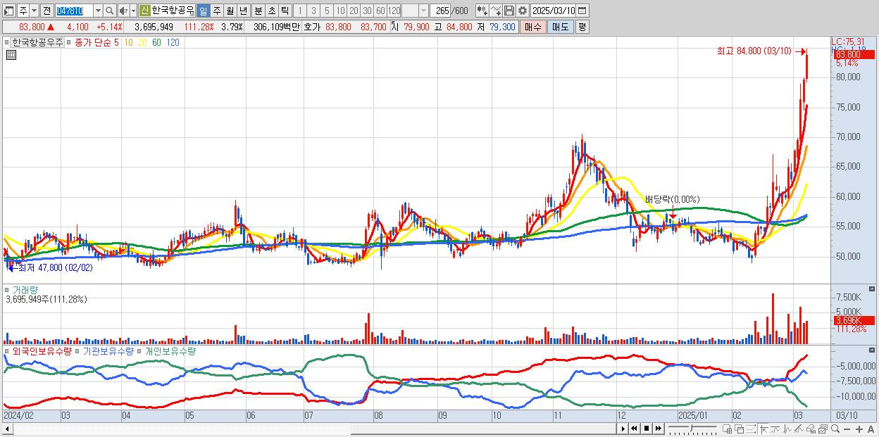 2.한국항공우주 83,800원 ▲ 5.14% (KOSPI, 047810)