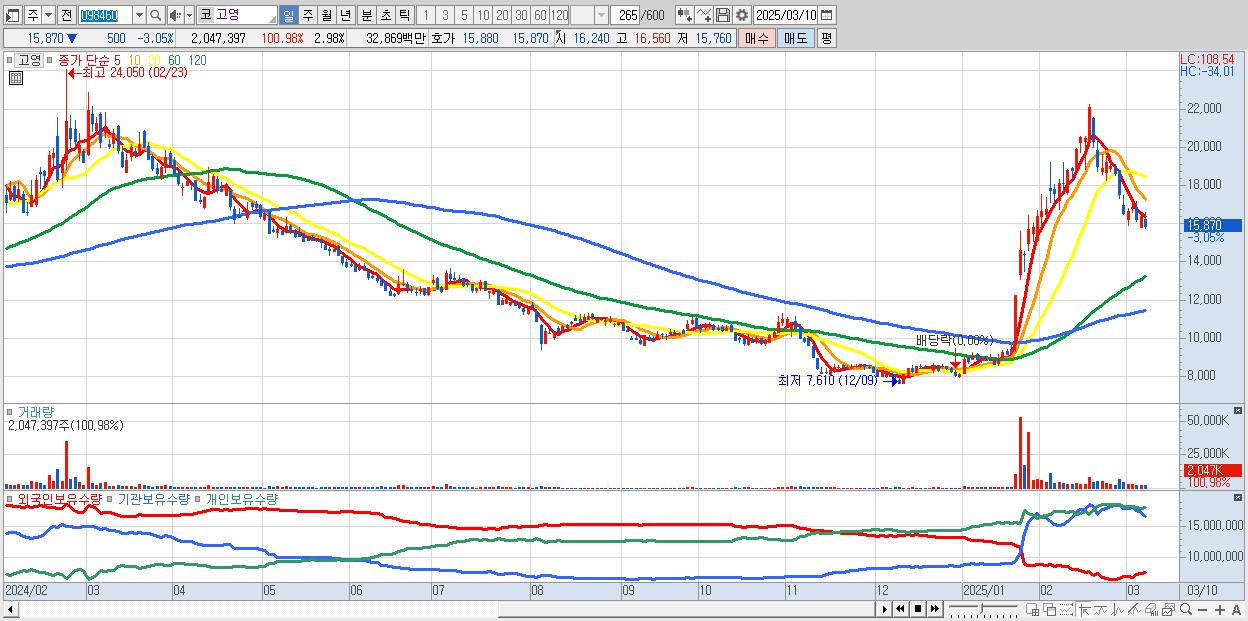 - 고영 (15,870원 ▼ -3.05% , 시총: 10,896억, 외국인 순매수 거래금:32억)