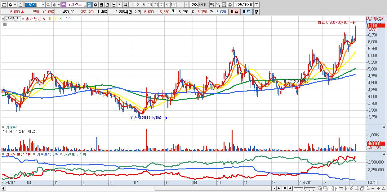 - 큐리언트 (6,600원 ▲ 9.09% , 시총: 2,132억, 거래량: 450,901, 거래대금:29억, KOSDAQ)