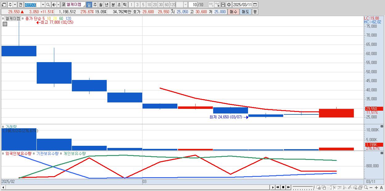 - 엘케이켐 (29,550원 ▲ 11.51% , 시총: 1,855억, 거래량: 1,198,512, 거래대금:348억)