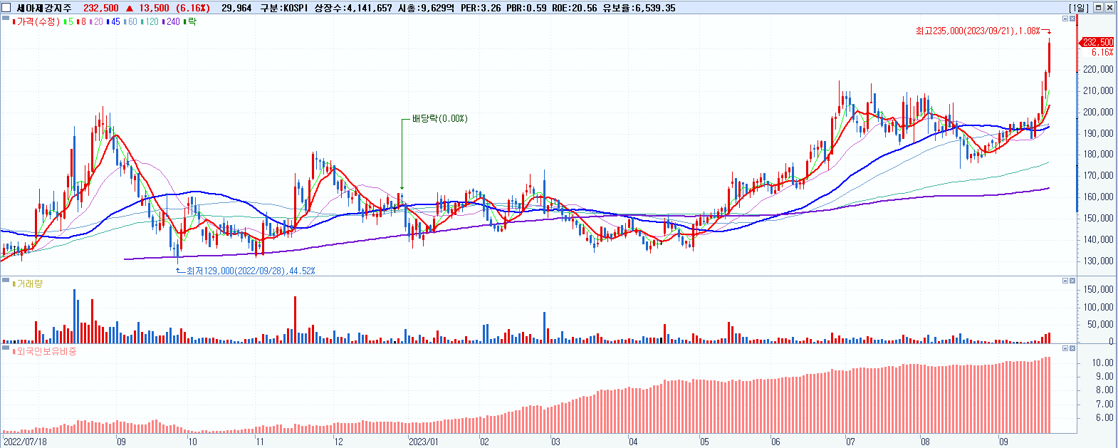 세아제강지주 232,500원 ▲ 6.16% (KOSPI, 003030)
