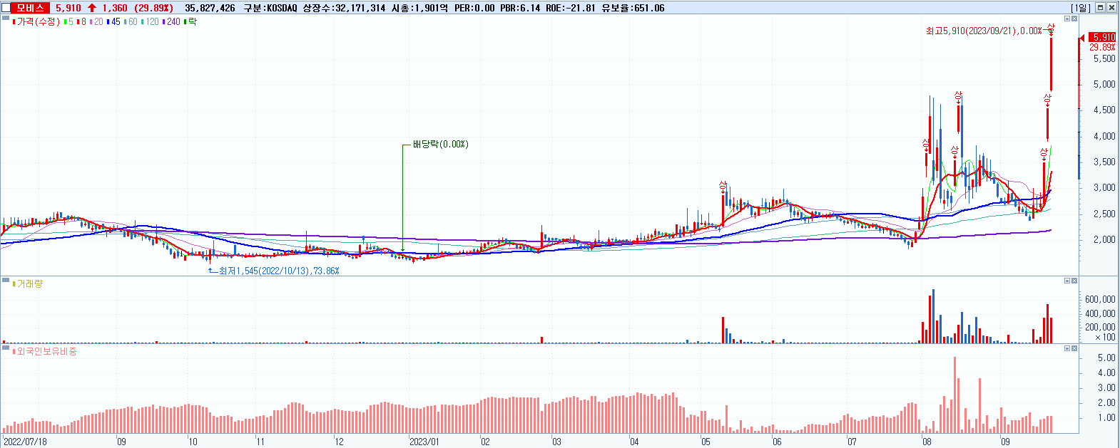 모비스 5,910원 ▲ 29.89% (KOSDAQ, 250060)