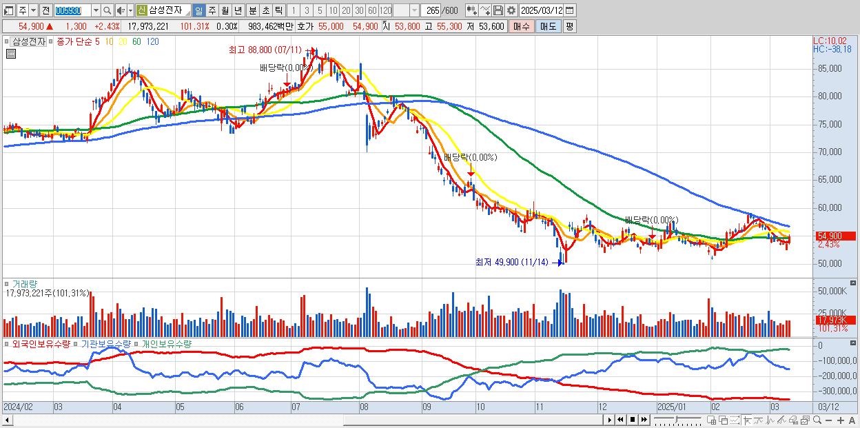 2.삼성전자 54,900원 ▲ 2.43% (KOSPI, 005930)