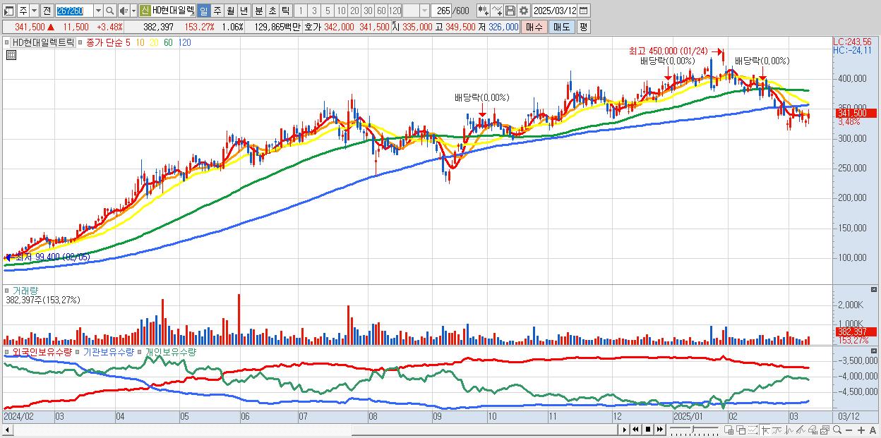 - HD현대일렉트릭 (341,500원 ▲ 3.48% , 시총: 123,101억, 거래량: 382,397, 거래대금:1,299억)
