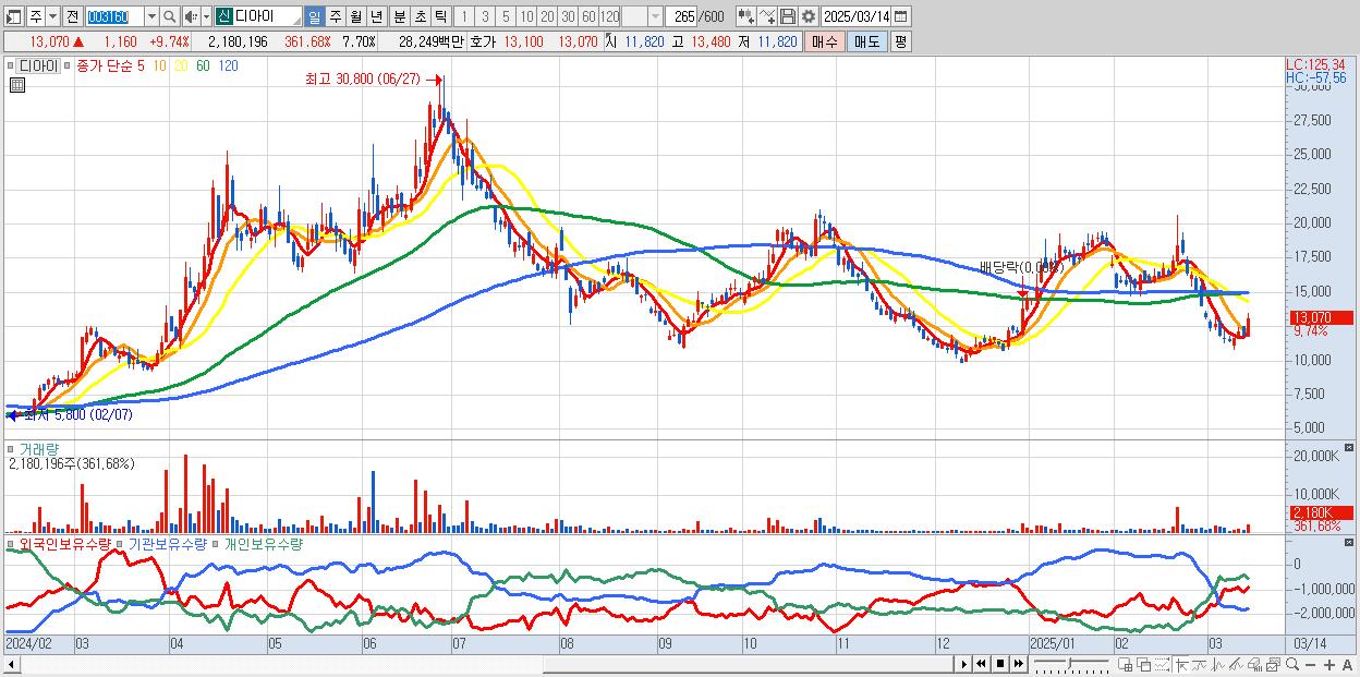 30.디아이 13,070원 ▲ 9.74% (KOSPI, 003160)