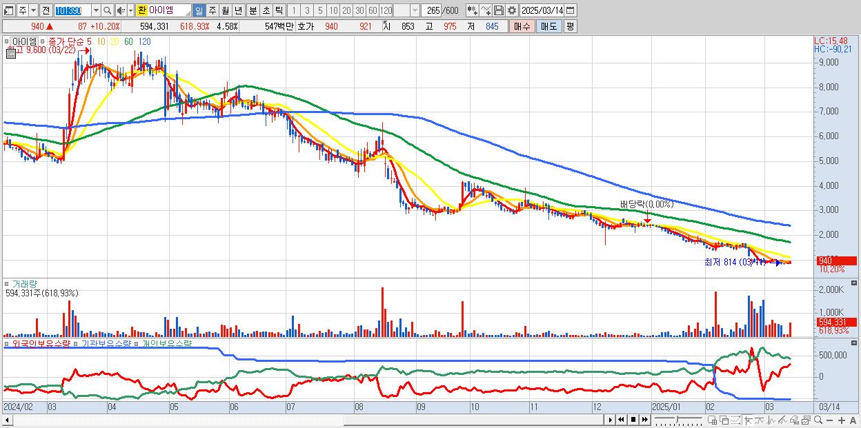 - 아이엠 (940원 ▲ 10.2% , 시총: 122억, 거래량: 594,331, 거래대금:5억)