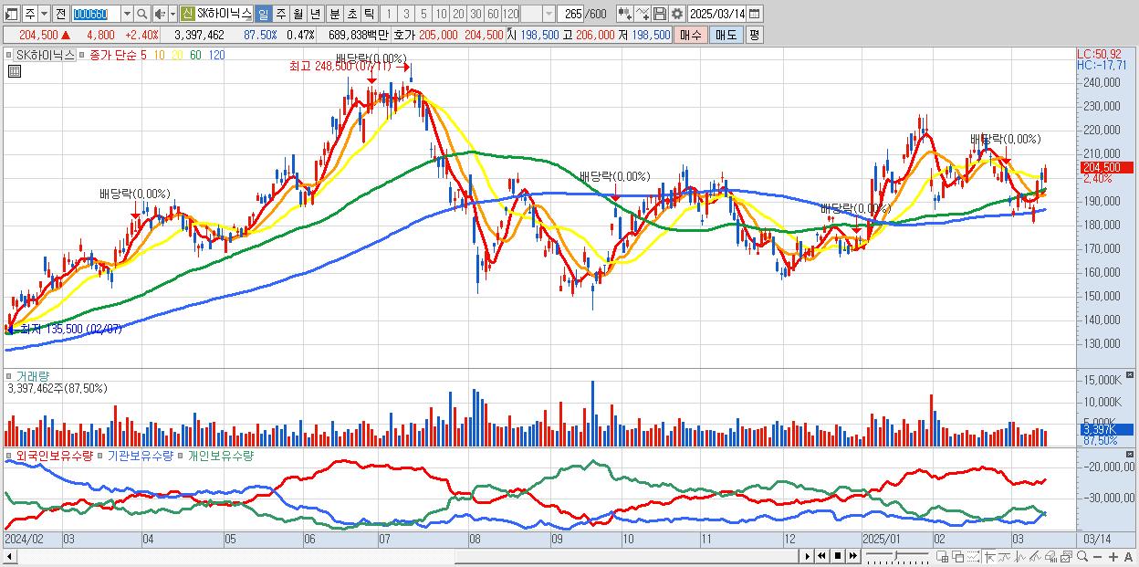1.SK하이닉스 204,500원 ▲ 2.4% (KOSPI, 000660)