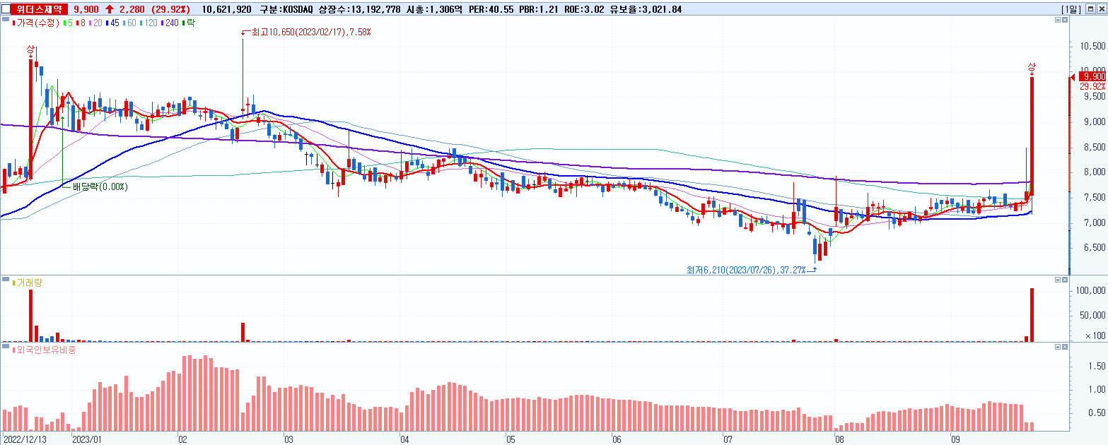 2.위더스제약 9,900원 ▲ 29.92% (KOSDAQ, 330350)