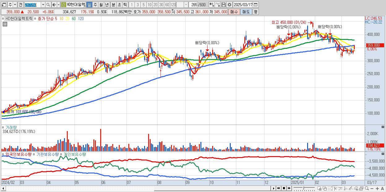 - HD현대일렉트릭 (359,000원 ▲ 6.06% , 시총: 129,409억, 외국인 순매수 거래금:140억)