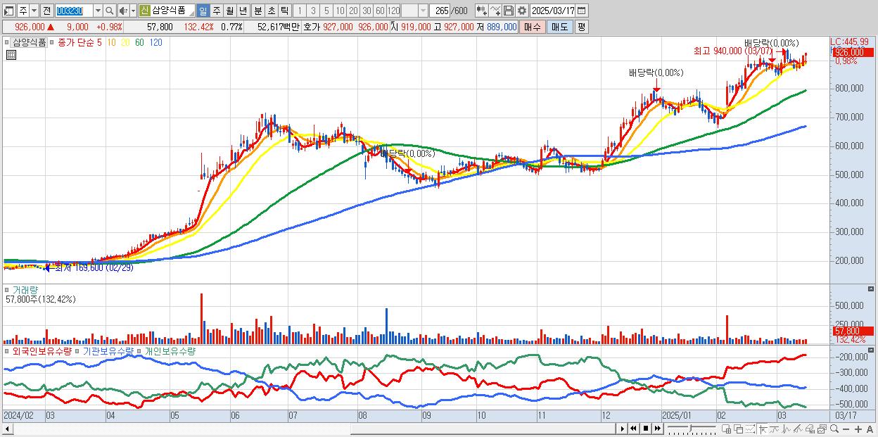- 삼양식품 (926,000원 ▲ 0.98% , 시총: 69,756억, 외국인 순매수 거래금:38억)