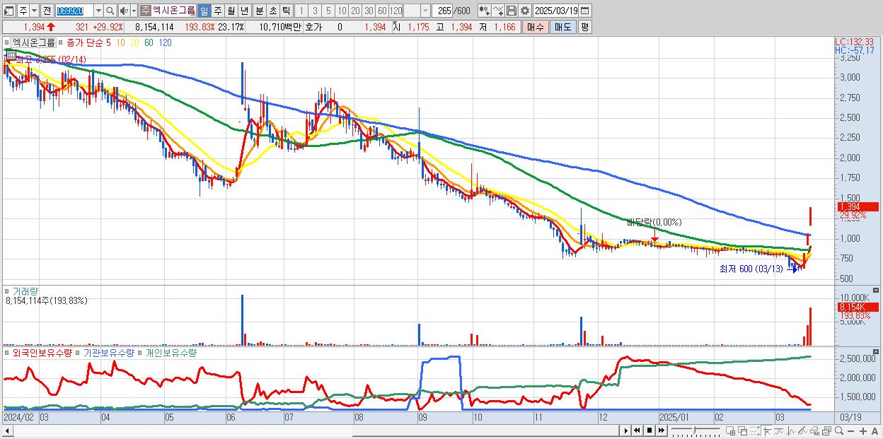 - 엑시온그룹 (1,394원 ▲ 29.92% , 시총: 491억, 거래량: 8,154,114, 거래대금:107억)