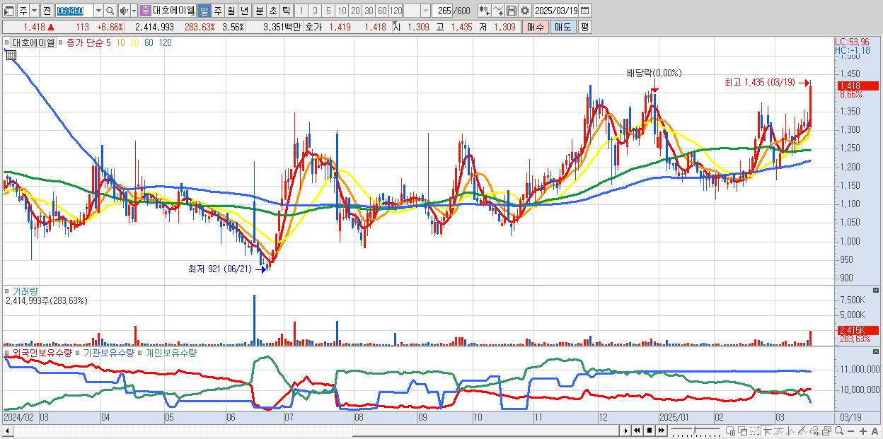 30.대호에이엘 1,418원 ▲ 8.66% (KOSPI, 069460)