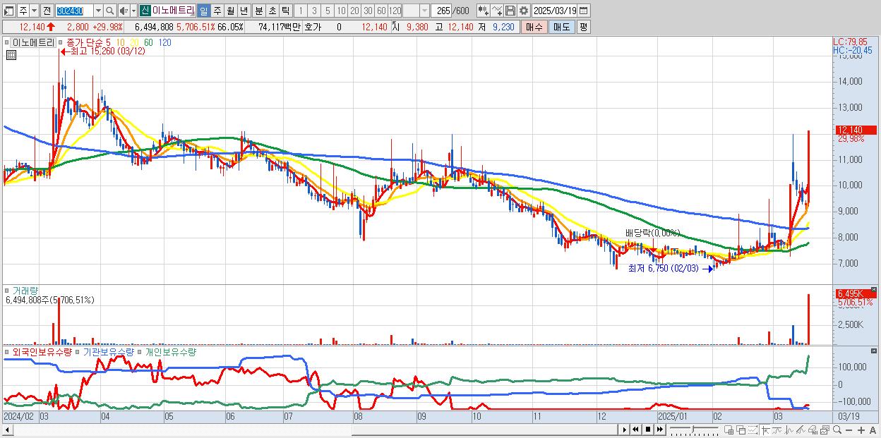 2.이노메트리 12,140원 ▲ 29.98% (KOSDAQ, 302430)