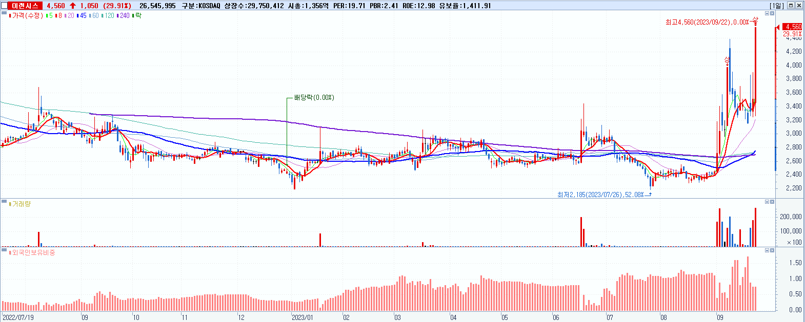 이랜시스 4,560원 ▲ 29.91% (KOSDAQ, 264850)