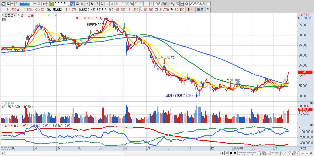 1.삼성전자 61,700원 ▲ 2.49% (KOSPI, 005930)