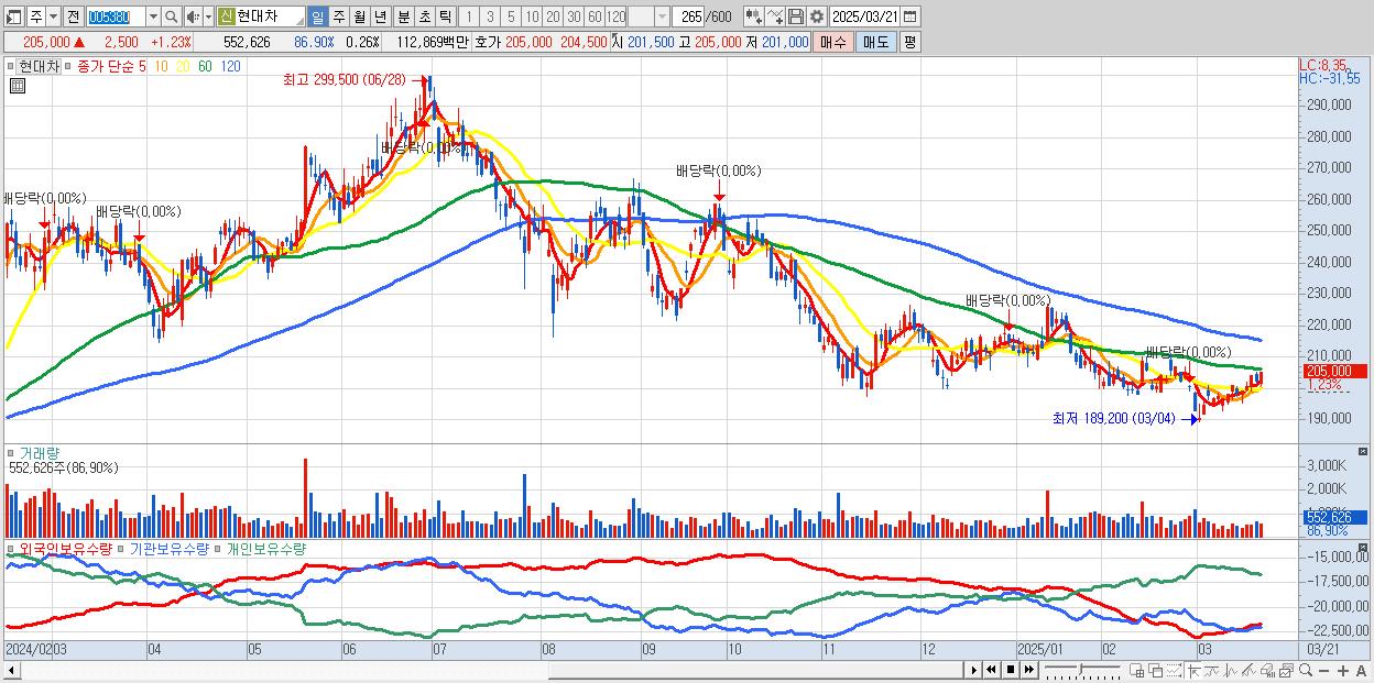 - 현대차 (205,000원 ▲ 1.23% , 시총: 429,303억, 외국인 순매수 거래금:318억)