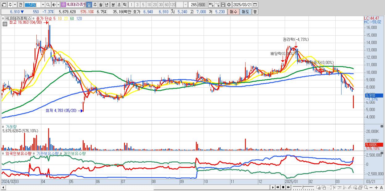 30.HLB테라퓨틱스 6,910원 ▼ -7.37% (KOSDAQ, 115450)