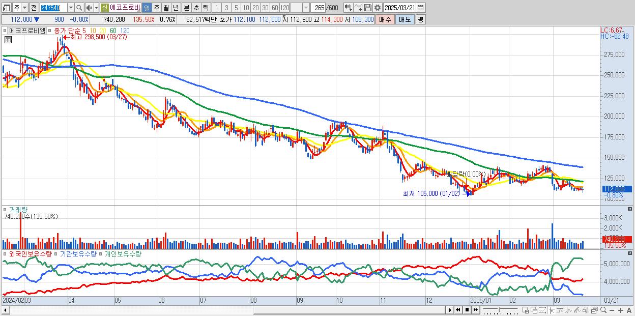 - 에코프로비엠 (112,000원 ▼ -0.8% , 시총: 109,538억, 외국인 순매수 거래금:112억)