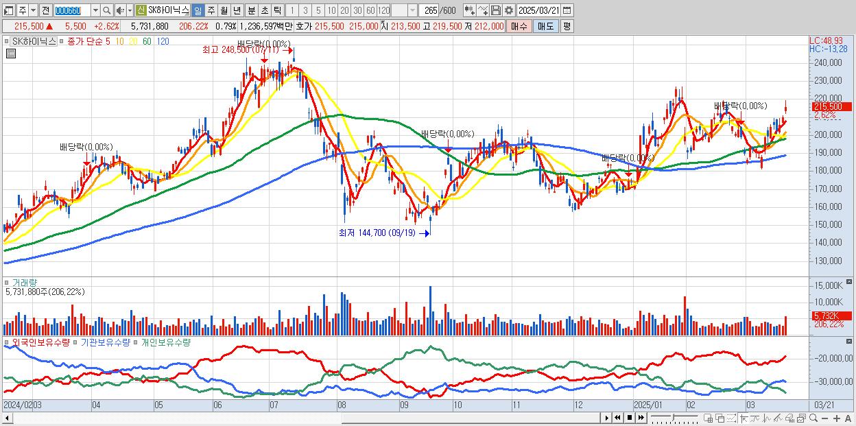 2.SK하이닉스 215,500원 ▲ 2.62% (KOSPI, 000660)