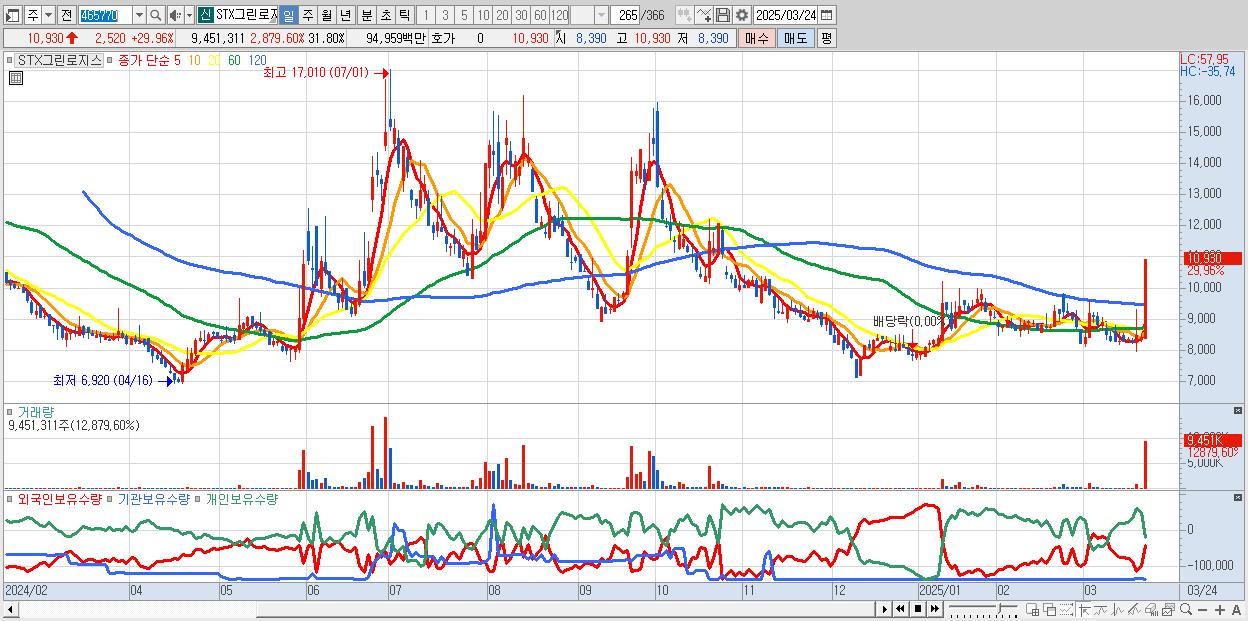 2.STX그린로지스 10,930원 ▲ 29.96% (KOSPI, 465770)